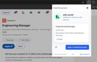 When you open a job posting, capture it with one click. No copy-paste, no tabs, no mess.