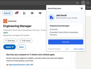 Extension popup on a job page