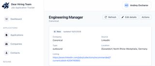 - Set a status immediately (Initial / Interview / Rejected)