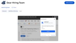 1. Install from the Chrome Web Store Open the store listing and click “Add to Chrome”.2. Pin the extension Click the puzzle icon and pin Dear Hiring Team so it’s always visible.